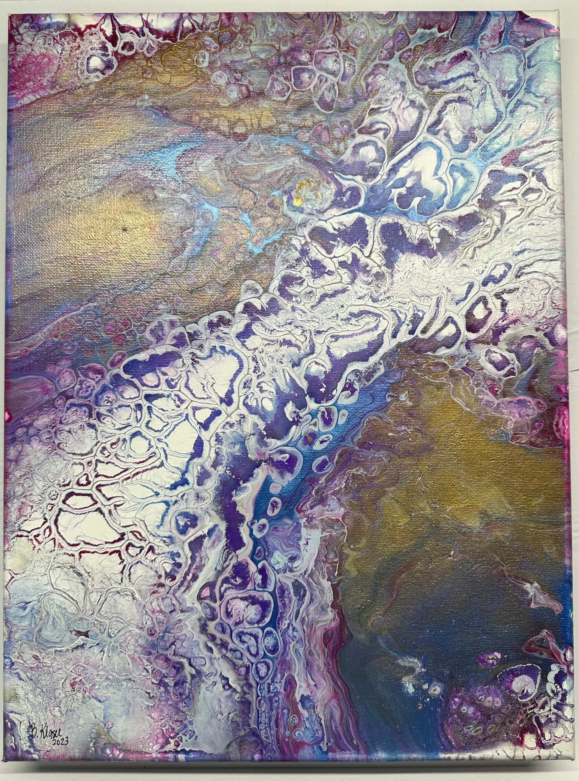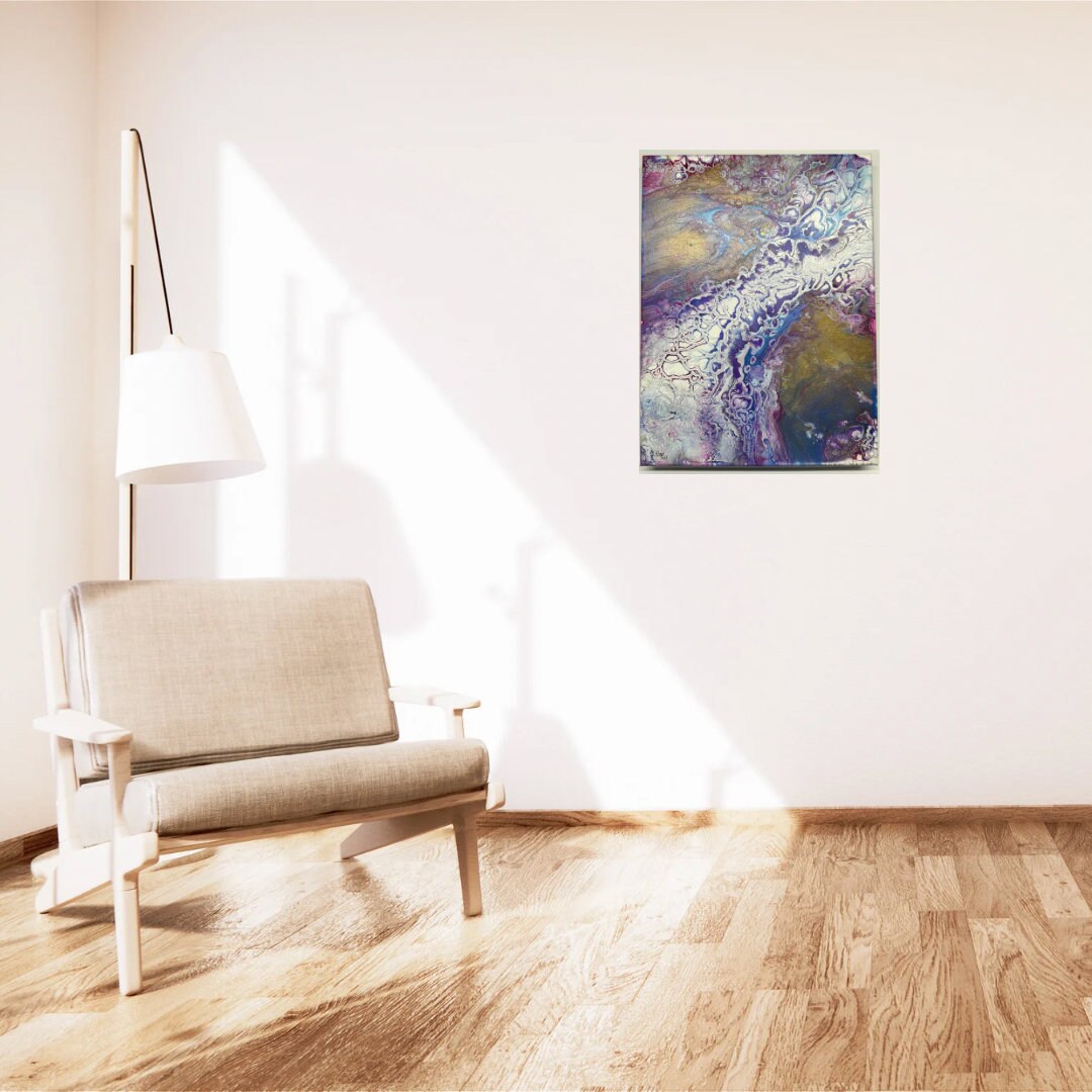 Abstract acrylic pour on canvas. 12” x 16”. Original. Finished with varnish for protection.